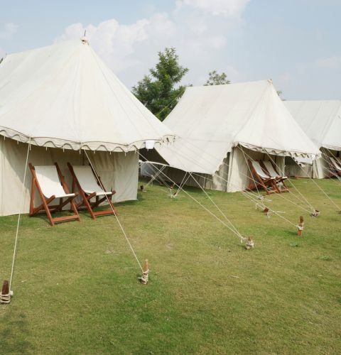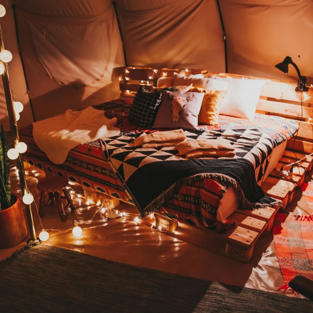 Comfortable tent stay with bedding